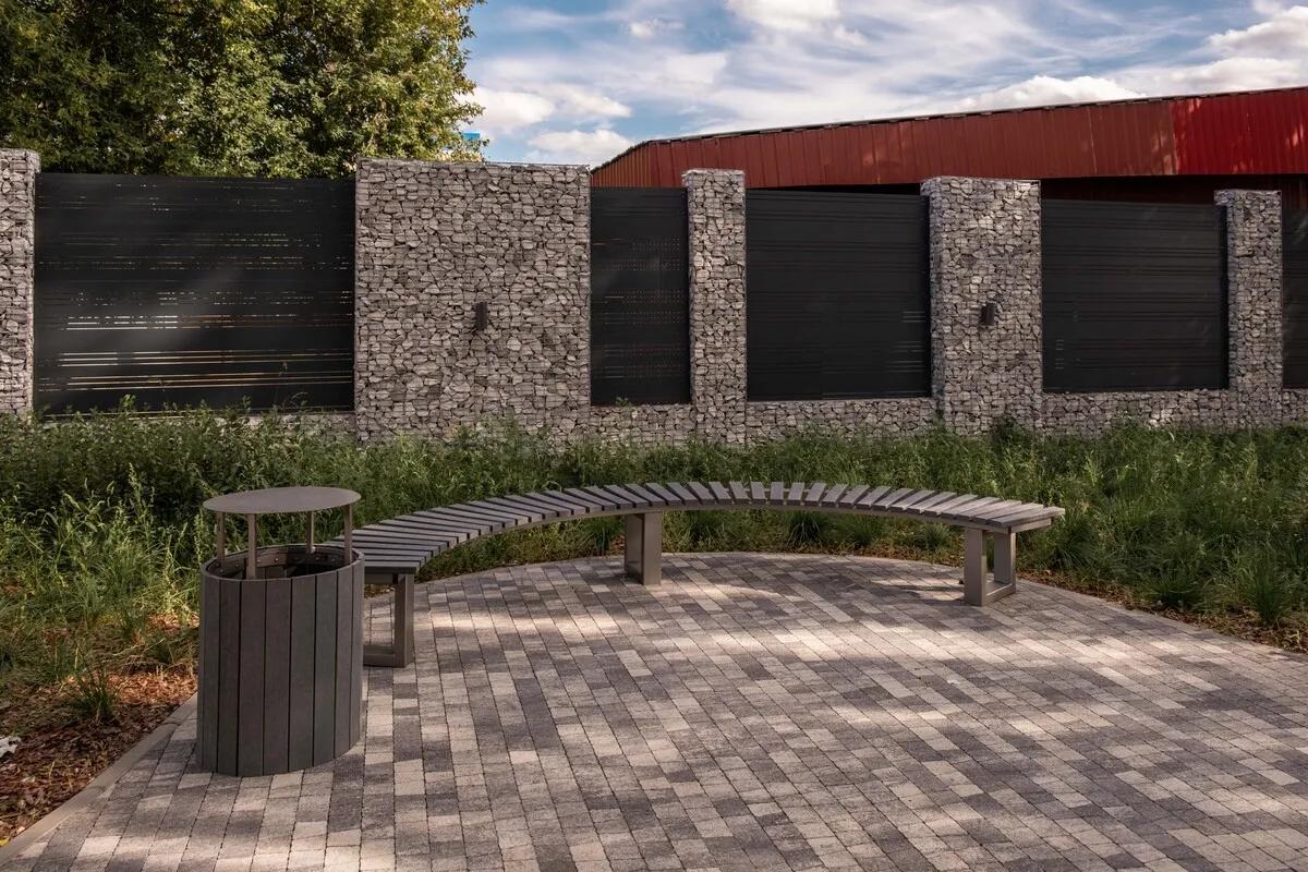 Состоит из 5-и элементов, которые выкладываются в хаотичном порядке рядами. Трапециевидная форма плиты позволяет выполнять как прямую, так и радиусную выкладку. Изготавливается по уникальной технологии методом полусухого вибропрессования из бетона. Поверхность выполнена с оригинальной зернистой фактурой черно-белого цвета. Натуральная гранитная крошка в лицевом слое изделий наделяет плитку приятной шероховатостью, а также устойчивостью к скольжению.