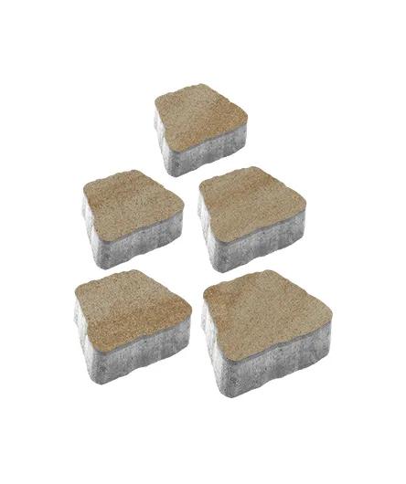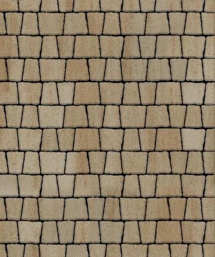 Состоит из 5-и элементов, которые выкладываются в хаотичном порядке рядами. Трапециевидная форма плиты позволяет выполнять как прямую, так и радиусную выкладку. Изготавливается по уникальной технологии методом полусухого вибропрессования из бетона. Поверхность бело-песчаного цвета.