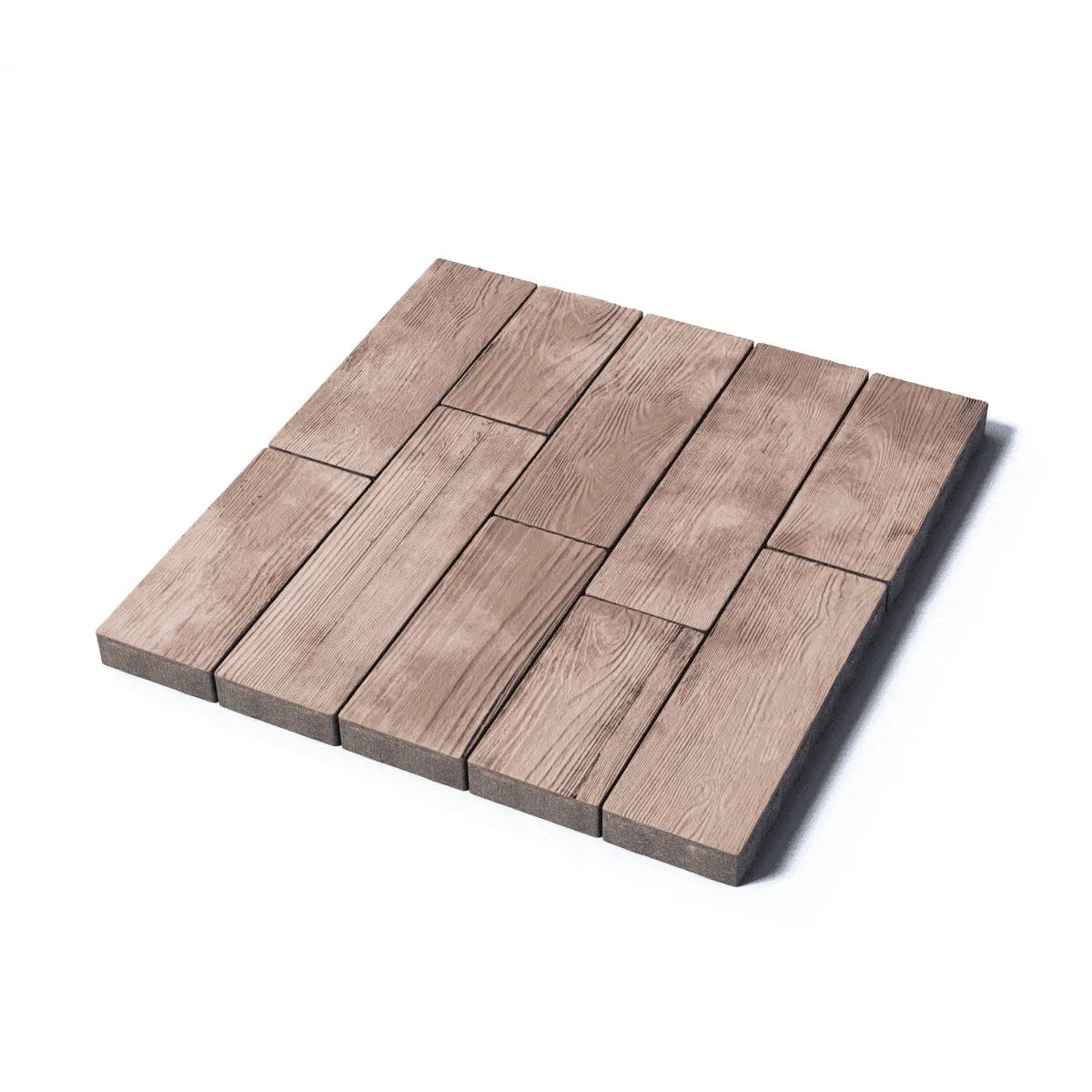 Изготавливается по уникальной технологии методом полусухого вибропрессования из бетона. Поверхность кремово-коричневого цвета выполнена с оригинальной фактурой дерева. Идеальна для оформления террас, патио.