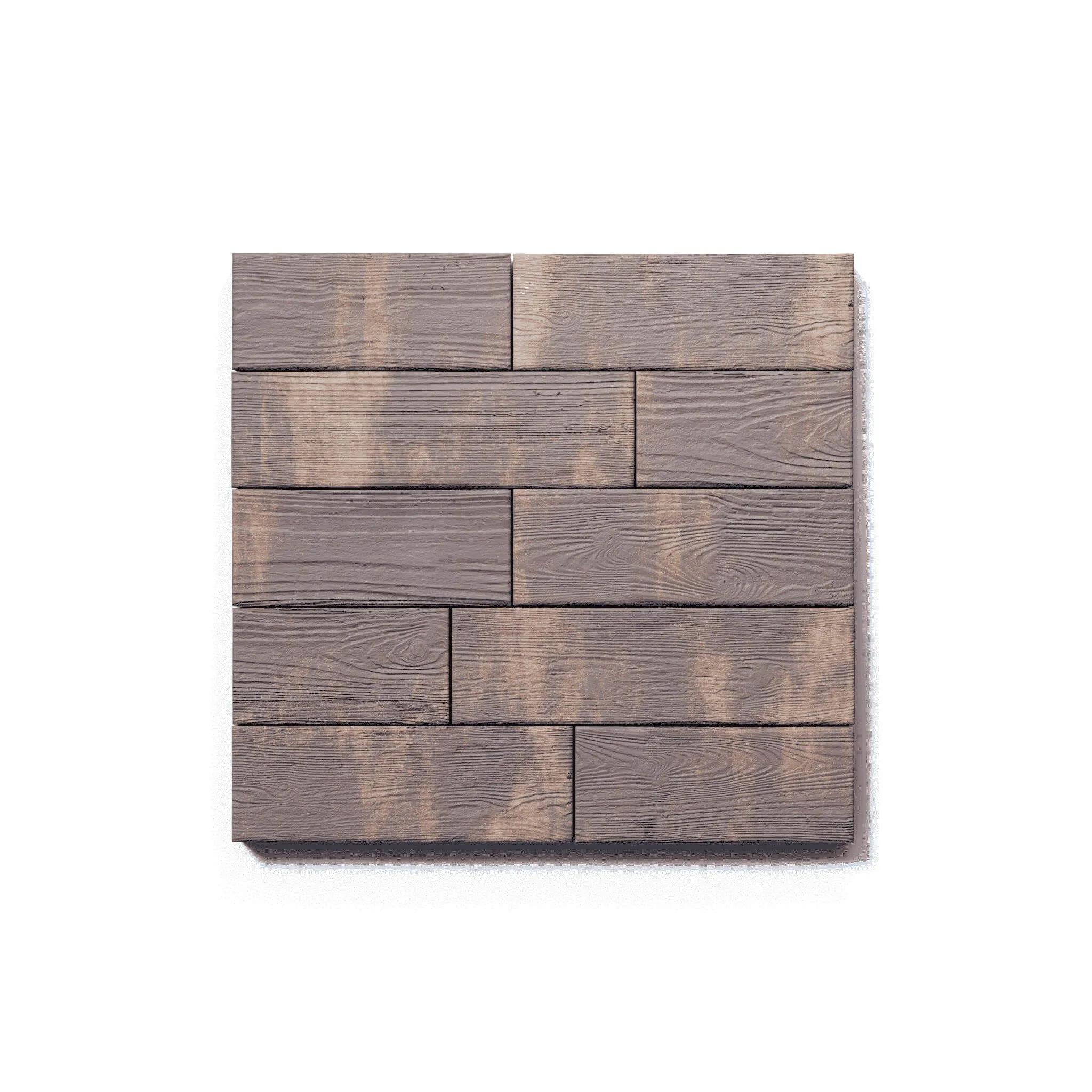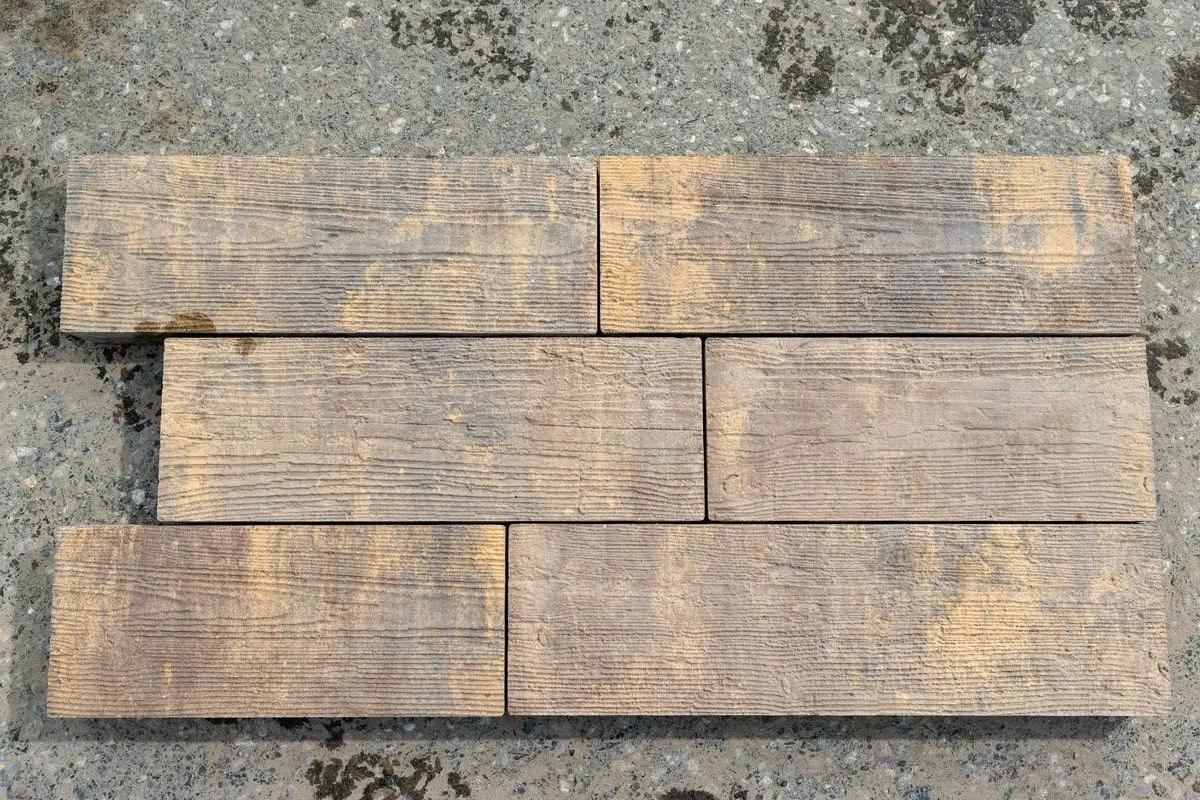 Изготавливается по уникальной технологии методом полусухого вибропрессования из бетона. Поверхность желто-коричнево-черного цвета выполнена с оригинальной фактурой дерева. Идеальна для оформления террас, патио.