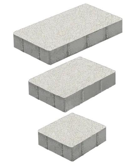 Состоит из 3-х элементов, которые выкладываются в хаотичном порядке рядами. Изготавливается по уникальной технологии методом полусухого вибропрессования из бетона. Поверхность белого цвета. Брусчатка Трио отличается высокой износостойкостью и практичностью в эксплуатации.
