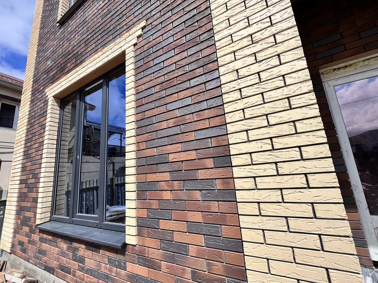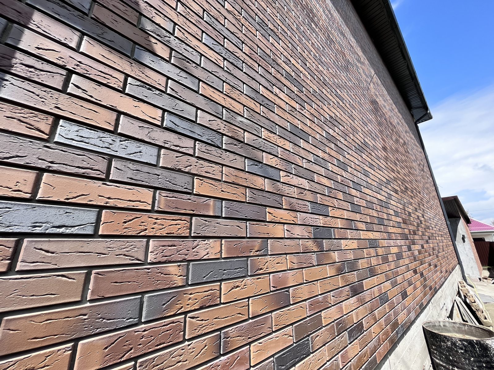 Stroma Flash Flame — фасадный керамический облицовочный кирпич, выполненный по технологии флеш-обжига. За счёт этого формируется выразительный внешний вид: отмечается неоднородная глянцевая поверхность и градация оттенка/текстуры, благодаря чему кладка выглядит «живее» и не монотонно.
